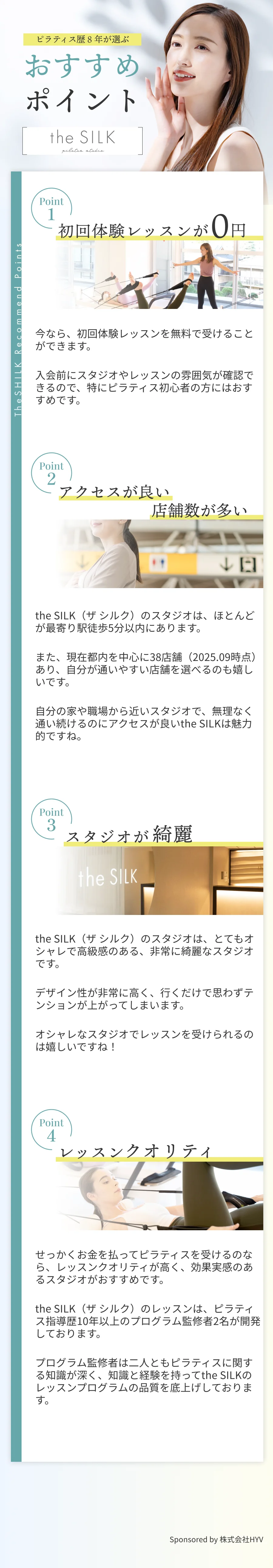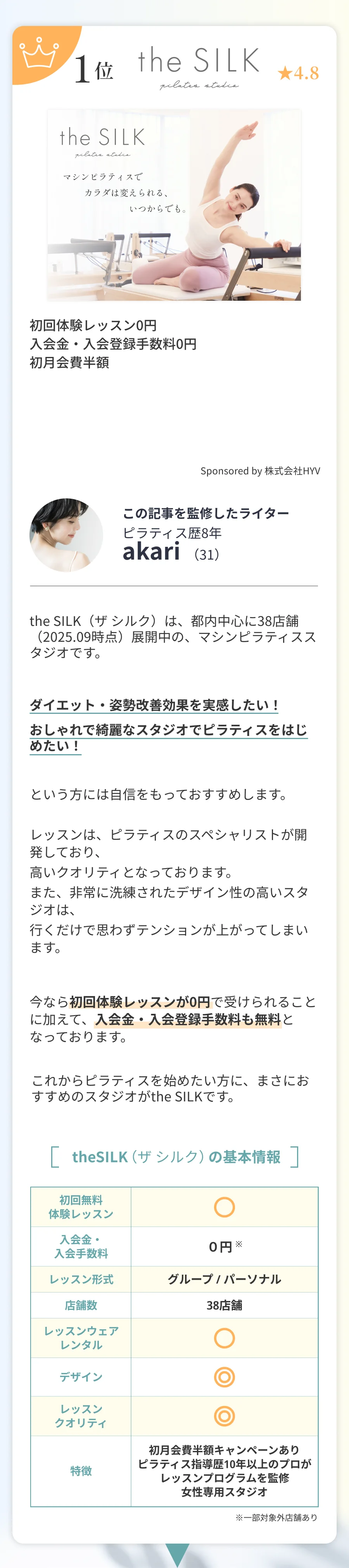 ピラティス歴8年のakariが、忖度なしで本当におすすめのスタジオを厳選しました。 ピラティス歴8年 akari(31) ピラティススタジオの選び方4選 選び方1 選び方2 選び方3 選び方4